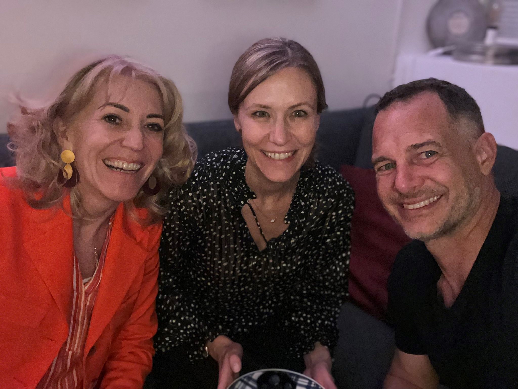 Nach getaner Arbeit der auf der Homepage verfügbaren Videovignetten zum Thema „Halt geben vs. Aushalten können": Ausklang der Projektverantwortlichen. Die Vignetten wurden im Inter-di-ko Studio in Salzburg sowie an der Praxismittelschule der Pädagogischen Hochschule gedreht. Personen v.l.n.r. Elisabeth Seethaler, Gerlinde Lenske, Wolf Hilzensauer. Siehe Team-Übersicht.